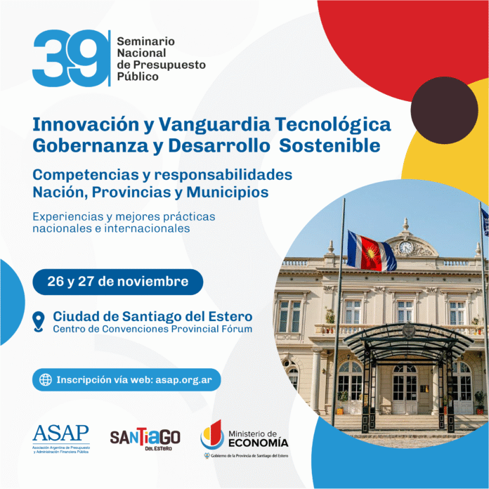 El 39° Seminario Nacional de Presupuesto Público tendrá lugar el 26 y 27 de noviembre en la Ciudad de Santiago del Estero. El evento se desarrollará en el Centro de Convenciones Provincial Fórum, según informó la Asociación Argentina de Presupuesto y Administración Financiera Pública (ASAP) junto al Gobierno de la Provincia de Santiago del Estero.