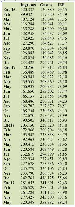 “El avance registrado en mayo es atribuible principalmente al fuerte incremento registrado en los ingresos, que crecieron un 15,5% respecto del mes anterior, mientras los gastos lo hicieron sólo un 4,5%”, puntualiza Víctor Beker, director del CENE.