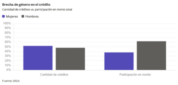 El documento también describió diferencias entre segmentos. En el caso de las mujeres, indicó que representan poco más de la mitad de los créditos otorgados, pero reciben una proporción menor de los montos, con tickets promedio por debajo. Además, consignó que a los hombres se les otorgan el 57% de los créditos y el 85% de los montos, mientras que a las mujeres el 52% y el 80% respectivamente.
