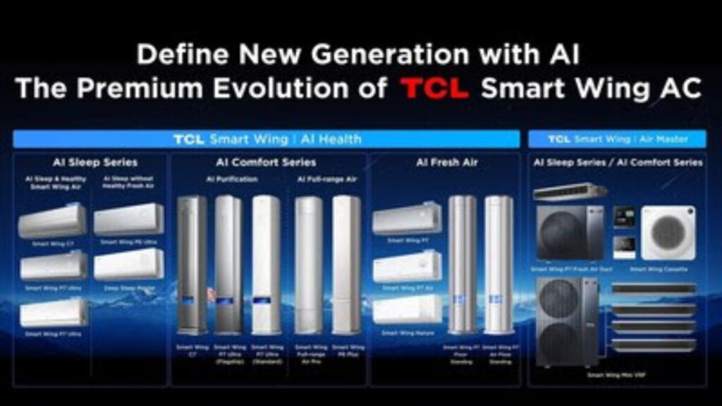En paralelo, TCL presentó su aire acondicionado insignia Smart Wing AI Healthy. El equipo integra 11 tecnologías y utiliza radar de ondas milimétricas para detectar el estado de sueño del usuario y personalizar una curva de temperatura dinámica durante el descanso. La propuesta incluye una función de confort con IA para una brisa suave y tecnología de aire fresco con IA orientada a mejorar los niveles de oxígeno y la humedad.