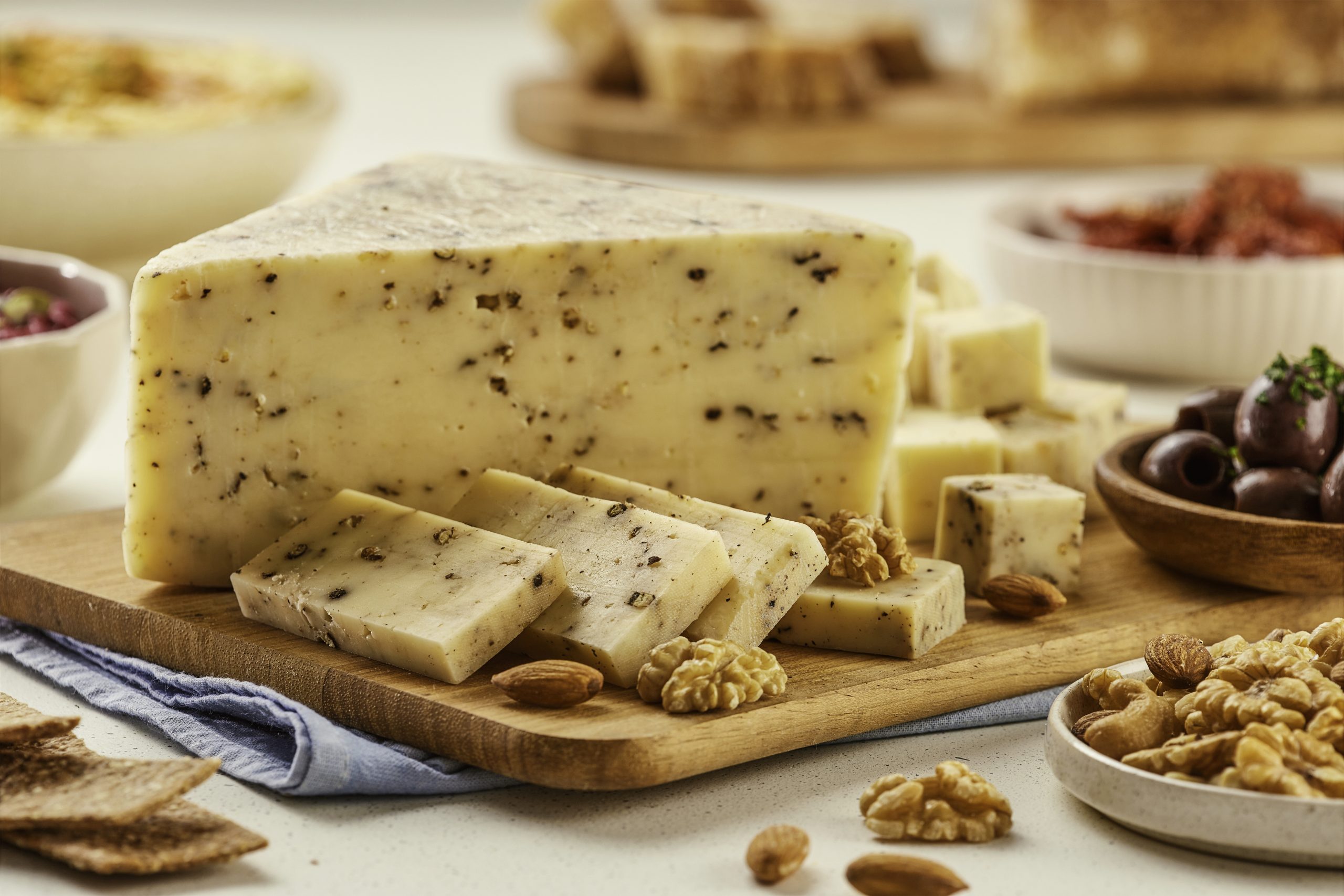 “De sabor láctico y salado, el Queso Santa Rosa con Pimienta Negra tiene un picante inigualable, gracias a sus 45 días de maduración mínima, y a los granos de pimienta seleccionados y cuidadosamente molidos que actúan como aromatizante natural”, explica Orlando Luciani, Maestro Quesero de Santa Rosa.