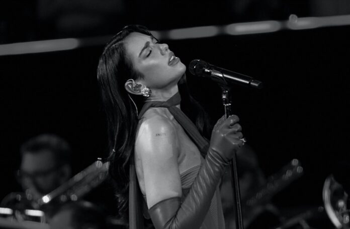 En este especial, la artista interpreta canciones de su tercer álbum de estudio, Radical Optimism, en un formato íntimo que explora sonidos psicodélicos presentes en sus trabajos previos. El evento incluye dueto con Elton John en “Cold Heart” y nuevas versiones de éxitos como “Levitating” y “Love Again”, acompañada por una orquesta de 53 músicos bajo la dirección de Ben Foster.