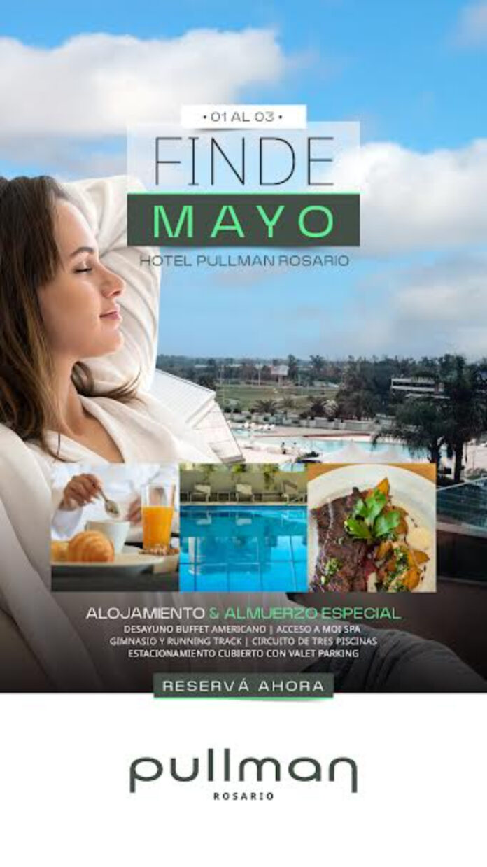 El Hotel Pullman Rosario diseñó un paquete de estadía para el próximo fin de semana largo en conmemoración del Día del Trabajador, con una propuesta que integra alojamiento, gastronomía y acceso a espacios de bienestar. La iniciativa contempla distintas opciones de noches y un esquema de servicios incluidos, con valores que van de $338.500 a $786.000.